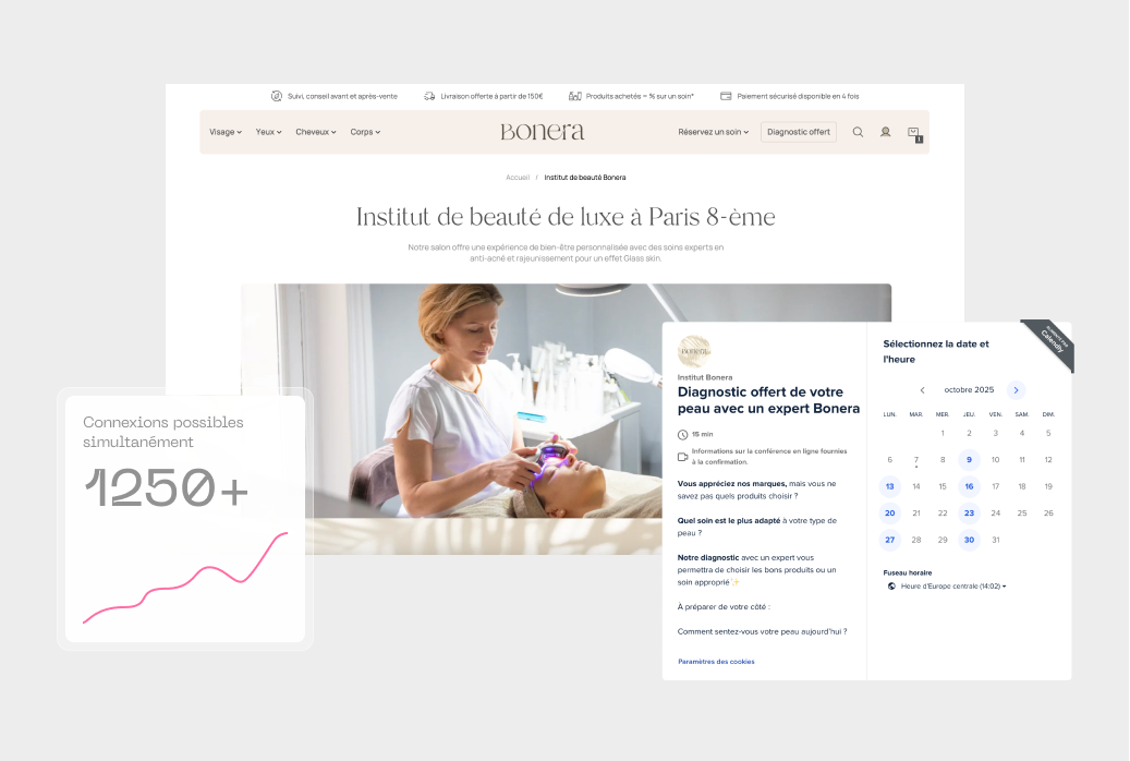 La vraie rupture : le consultant IA intégré directement dans le site. Ce n’est pas un chatbot basique. Formé sur vos données – votre catalogue, vos offres, vos références – il engage une vraie conversation, qualifie le lead et l’oriente vers le bon interlocuteur. Il s’intègre dans vos flux marketing existants : CRM, emailing, relances automatiques. Le résultat : moins de temps entre la première visite et la prise de contact, et de meilleures opportunités transmises à vos commerciaux.